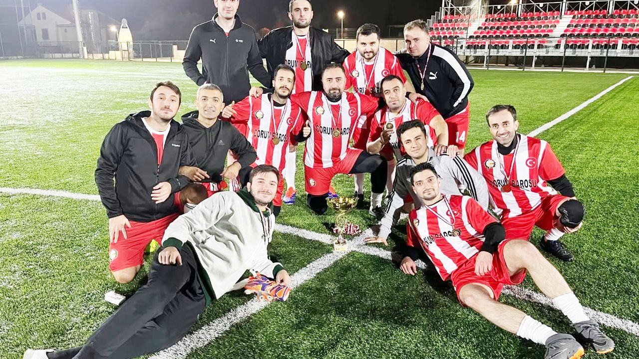 Çorum Barosu’ndan yapılan açıklamada, “Cumhuriyet Kupası Futbol Turnuvamızın finali coşku ve heyecan dolu mücadelelerin ardından tamamlanmıştır. Turnuvamıza katılarak sportif dayanışma, fair-play ruhu ve dostluğun en güzel örneklerini sergileyen tüm takımlarımıza teşekkür ederiz. Bu organizasyonun gerçekleşmesinde emeği geçen tüm meslektaşlarımıza, hakemlerimize, görevlilerimize ve destek veren kurum ve kuruluşlara katkılarından dolayı teşekkür ederiz.” ifadelerine yer verildi.