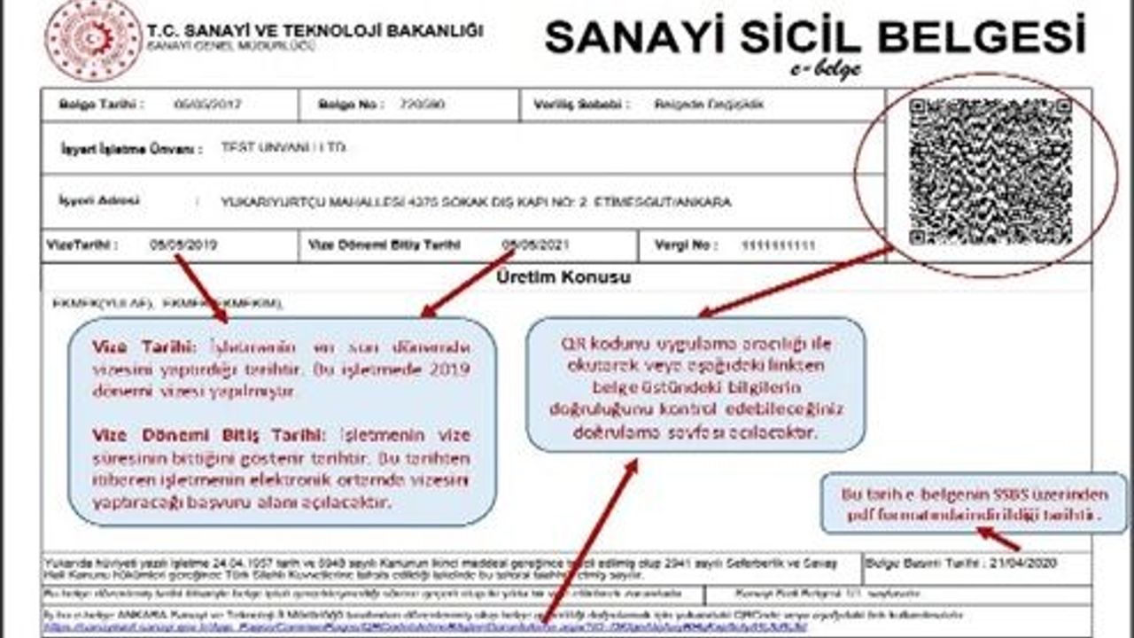 Yapılan açıklamada, 6948 Sayılı Sanayi Sicili Kanunu’nun 5. maddesi gereğince sanayi sicil belgesi sahibi işletmelerin her yıl 1 Ocak–30 Nisan tarihleri arasında bir önceki yıla ait yıllık işletme cetvellerini sisteme girmeleri gerektiği belirtildi.